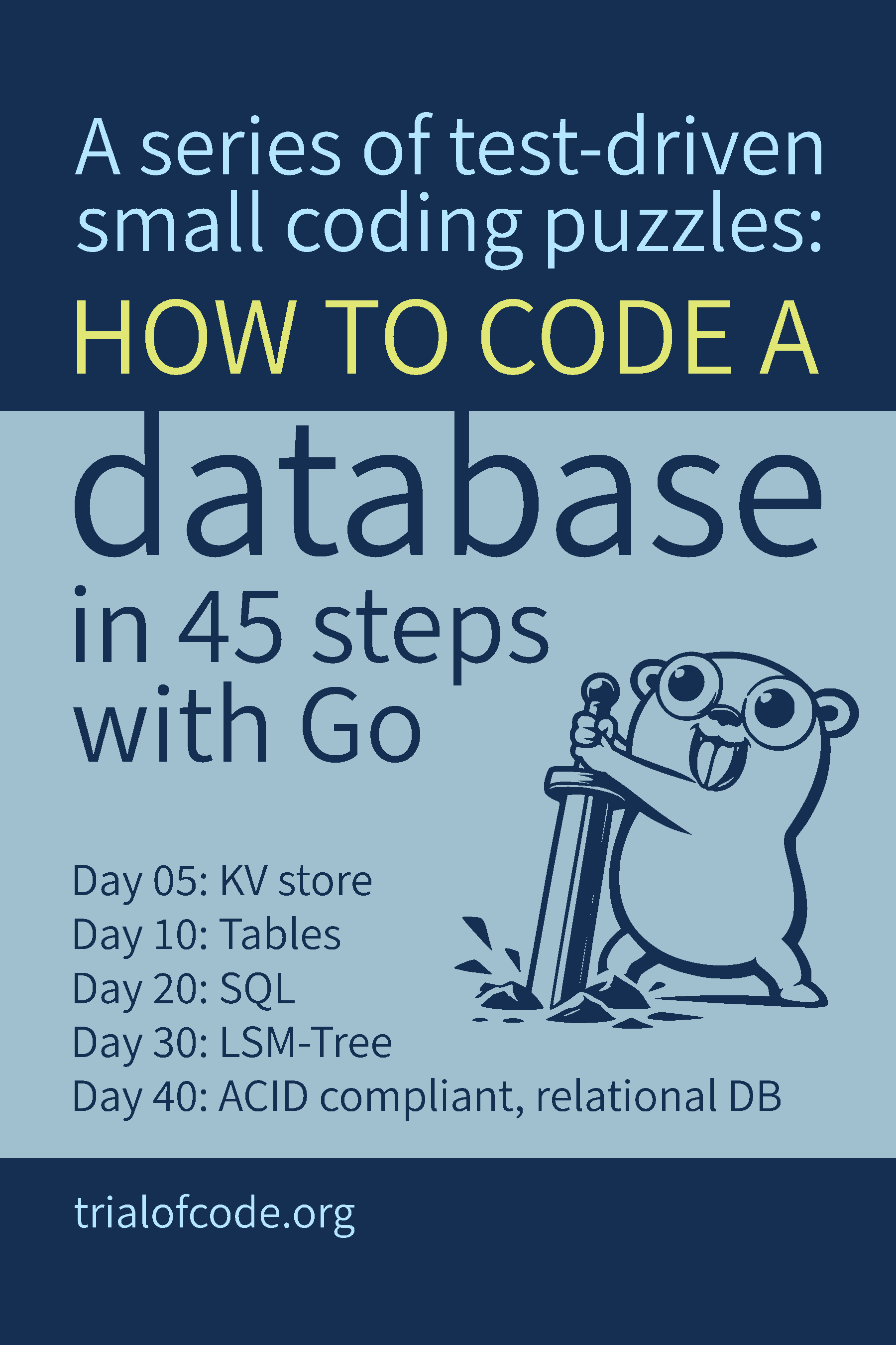 Understand databases from the bottom up by building your own, in small steps, and with simple Golang code.